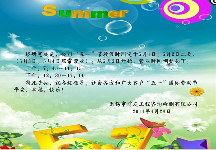 | 關(guān)于“五一”節(jié)放假及節(jié)后營(yíng)業(yè)時(shí)間調(diào)整的公告 | ||