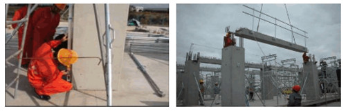 預(yù)制柱就位 大梁吊裝 ![]() 小梁吊裝 樓板鋪設(shè)