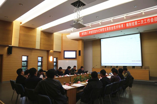 11月22日,工程建設(shè)行業(yè)標(biāo)準(zhǔn)《建筑施工承插型盤(pán)扣式鋼管支架安全技術(shù)規(guī)程》(JGJ231-2010)修編編制組第二次工作會(huì)議在無(wú)錫召開(kāi),來(lái)自全國(guó)的行標(biāo)編制組人員參加了會(huì)議。 會(huì)議由東南大學(xué)郭正興教授主持,編制組逐條討論修編內(nèi)容,并分析修改需要進(jìn)行的實(shí)驗(yàn)等支撐依據(jù),對(duì)修編內(nèi)容進(jìn)行了工作任務(wù)分配。會(huì)議期間,參會(huì)的專(zhuān)家學(xué)者參觀(guān)了無(wú)錫速捷腳手架工程有限公司生產(chǎn)工藝、觀(guān)摩了無(wú)錫市前友工程咨詢(xún)檢測(cè)有限公司檢測(cè)實(shí)驗(yàn)。 近年來(lái),承插型盤(pán)扣架產(chǎn)品品質(zhì)和應(yīng)用技術(shù)已趨成熟,其支架具有的施工安全可靠度高、承載力大、搭拆方便、施工工期短、現(xiàn)場(chǎng)文明美觀(guān)等優(yōu)點(diǎn)已被行業(yè)所認(rèn)同,并成為高大支模的首選。今年,無(wú)錫地鐵3號(hào)線(xiàn)、地鐵1號(hào)線(xiàn)延伸段和阿里巴巴菜鳥(niǎo)物流等工程已大量使用承插型盤(pán)扣式鋼管支架。