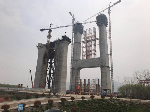 五峰山長(zhǎng)江特大橋位于江蘇泰州長(zhǎng)江大橋和潤(rùn)揚(yáng)長(zhǎng)江大橋之間,是繼1968年建成的南京長(zhǎng)江大橋和正在建設(shè)的滬通長(zhǎng)江大橋之后的長(zhǎng)江江蘇段第三座公鐵兩用大橋,是連接連淮揚(yáng)鎮(zhèn)鐵路和京滬高速公路南延的關(guān)鍵節(jié)點(diǎn)工程。其全長(zhǎng)6400多米,其中主跨為1092米,采用單跨懸吊鋼桁梁懸索結(jié)構(gòu),上層為8車(chē)道高速公路,設(shè)計(jì)速度每小時(shí)100公里;下層為4線(xiàn)高速鐵路通道,設(shè)計(jì)速度每小時(shí)250公里。 五峰山公鐵兩用長(zhǎng)江大橋建成后,將是中國(guó)第一座鐵路懸索橋,也是世界荷載和設(shè)計(jì)時(shí)速第一的鐵路懸索橋。該工程中,研發(fā)和應(yīng)用了大量的新技術(shù)、新工藝。 3月24日,無(wú)錫市建筑施工學(xué)術(shù)委員赴丹徒五峰山長(zhǎng)江大橋項(xiàng)目現(xiàn)場(chǎng),在參與施工的江陰一建技術(shù)人員的陪同下,登上北岸主橋墩滑模平臺(tái)現(xiàn)場(chǎng)參觀(guān)。