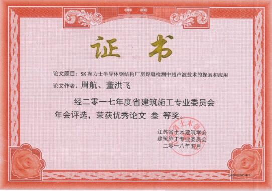 無(wú)錫市前友工程咨詢(xún)檢測(cè)有限公司長(zhǎng)期致力建立學(xué)習(xí)創(chuàng)新型企業(yè),這次,又有“鋼管模架整體結(jié)構(gòu)力學(xué)性能試驗(yàn)”、“淺談建筑施工預(yù)拌干混砂漿性能檢測(cè)技術(shù)”等七篇論文獲獎(jiǎng)。