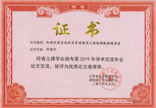 5月15日至5月17日,江蘇省土木建筑學(xué)會(huì)建筑施工專(zhuān)業(yè)委員會(huì)第九屆六次會(huì)議暨2019年學(xué)術(shù)交流會(huì)在鎮(zhèn)江句容市召開(kāi)。 會(huì)議總結(jié)交流了各市學(xué)會(huì)工作經(jīng)驗(yàn),研究布置了2019年省學(xué)會(huì)施專(zhuān)委工作。會(huì)上組織了學(xué)術(shù)交流,論文主題為綠色環(huán)保及節(jié)能施工新技術(shù)、建筑裝飾裝修施工學(xué)技術(shù)、現(xiàn)代施工管理及施工質(zhì)量安全監(jiān)控等。 今年的論文評(píng)審,更注重質(zhì)量,不求數(shù)量。全省各市推薦500篇論文參會(huì)交流,經(jīng)評(píng)審,有300篇論文評(píng)選為省優(yōu)秀施工學(xué)術(shù)論文。無(wú)錫市前友工程咨詢(xún)檢測(cè)有限公司“加強(qiáng)儀器設(shè)備校準(zhǔn)管理提高工程檢測(cè)數(shù)據(jù)精準(zhǔn)度”論文參會(huì)交流并獲獎(jiǎng)。