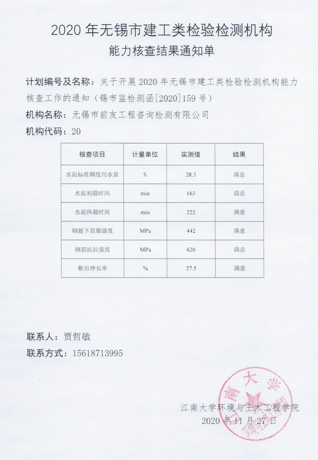 | 2020年無(wú)錫市建工類(lèi)檢測(cè)機(jī)構(gòu)水泥鋼筋能力核查公司全獲滿(mǎn)意 | ||