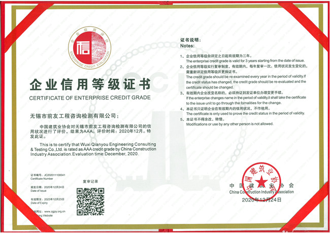 近日,公司收到了中國(guó)建筑業(yè)協(xié)會(huì)頒發(fā)的“關(guān)于公布2020年度建筑業(yè)AAA級(jí)信用企業(yè)(檢測(cè)機(jī)構(gòu))的通知”和建筑業(yè)AAA級(jí)信用企業(yè)證書(shū)。 為加快推進(jìn)社會(huì)信用體系建設(shè),促進(jìn)企業(yè)誠(chéng)信經(jīng)營(yíng),中國(guó)建筑業(yè)協(xié)會(huì)質(zhì)量管理與監(jiān)督檢測(cè)分會(huì),根據(jù)“關(guān)于開(kāi)展2020年度建筑業(yè)AAA級(jí)信用企業(yè)(檢測(cè)機(jī)構(gòu))評(píng)價(jià)推薦工作的通知”要求,本著公開(kāi)、公平、公正的原則,通過(guò)檢測(cè)機(jī)構(gòu)自愿申請(qǐng)、各省市相關(guān)單位推薦,在相關(guān)網(wǎng)站上排查復(fù)核,專(zhuān)家綜合評(píng)價(jià)及網(wǎng)上公示,確定北京環(huán)安工程檢測(cè)有限責(zé)任公司等129家檢測(cè)機(jī)構(gòu)為2020年度建筑業(yè)AAA級(jí)信用企業(yè)(檢測(cè)機(jī)構(gòu)),現(xiàn)已發(fā)文公布。 誠(chéng)信企業(yè)的建設(shè)永遠(yuǎn)在路上。無(wú)錫市前友工程咨詢(xún)檢測(cè)有限公司將以此作為加快公司高質(zhì)量發(fā)展的新動(dòng)力,進(jìn)一步加強(qiáng)信用體系建設(shè),練實(shí)內(nèi)功,優(yōu)化服務(wù),積極履行社會(huì)責(zé)任,為促進(jìn)行業(yè)持續(xù)健康發(fā)展做出新的貢獻(xiàn)。