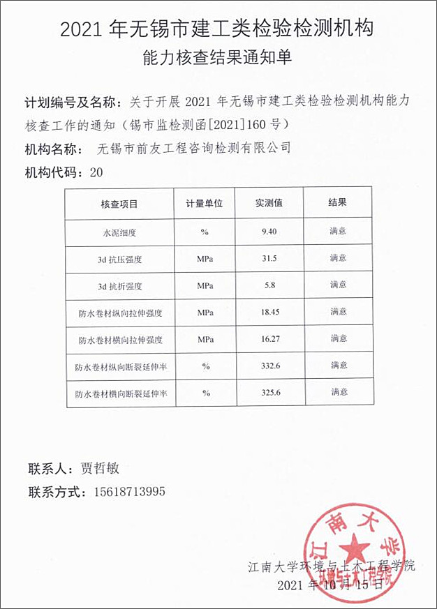 | 2021年無(wú)錫市建工類(lèi)檢驗(yàn)檢測(cè)項(xiàng)目能力核查公司獲滿(mǎn)意 | ||
