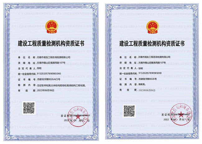 近日,江蘇省住房和城鄉(xiāng)建設(shè)廳網(wǎng)站公布了工程檢測(cè)企業(yè)資質(zhì)核準(zhǔn)結(jié)果的公告。無(wú)錫市前友工程咨詢(xún)檢測(cè)有限公司獲準(zhǔn)資質(zhì)延續(xù),已取得嶄新的《建設(shè)工程質(zhì)量檢測(cè)機(jī)構(gòu)資質(zhì)證書(shū)》。據(jù)此,公司資質(zhì)延續(xù)工作已順利完成。 公司成立十六年來(lái),資質(zhì)能力不斷提高。公司的業(yè)務(wù)服務(wù)范圍已拓展到建筑工程材料檢測(cè)、工程實(shí)體質(zhì)量檢測(cè)、工程安全類(lèi)構(gòu)件檢測(cè)、裝配式結(jié)構(gòu)檢測(cè)、工程測(cè)量、房屋安全鑒定。公司成長(zhǎng)為國(guó)家高新技術(shù)企業(yè),并獲中國(guó)建筑業(yè)協(xié)會(huì)AAA級(jí)信用企業(yè)(檢測(cè)機(jī)構(gòu))。 檢測(cè)資質(zhì)的順利延續(xù),為公司高品質(zhì)發(fā)展奠定了基礎(chǔ)。公司將不忘初心,虔誠(chéng)為政府、客戶(hù)和社會(huì)提供更優(yōu)質(zhì)、更全面的咨詢(xún)檢測(cè)服務(wù)。
