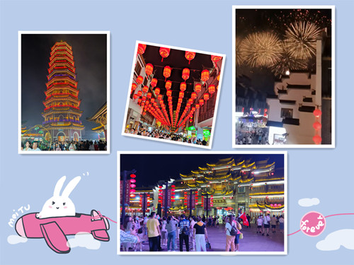 夜幕下的龍之夢(mèng)景色更加迷人,遠(yuǎn)眺湖州的地標(biāo)性建筑月亮灣酒店,宛如一輪巨大的拱形明月靜靜的立在太湖的水面上,耀眼的燈光讓它在夜色中足以與天上真正的明月?tīng)?zhēng)輝。而此時(shí)腳下的彩虹橋像是用它的音樂(lè)噴泉在為這絢麗的月亮灣歡呼喝彩。太湖古鎮(zhèn)似是要與月亮灣一爭(zhēng)高下,絢爛煙花頓時(shí)照亮整個(gè)夜空,時(shí)而像流星一閃而過(guò),時(shí)而像瀑布直瀉而下,時(shí)而像花朵格外嬌艷……如此撩人夜色,成了大家手中相機(jī)的主角。