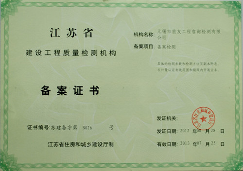 自公司申請(qǐng)資質(zhì)(增擴(kuò)項(xiàng))后,先后通過(guò)市建設(shè)局組織的現(xiàn)場(chǎng)考核,省建設(shè)行政審批中心初審、復(fù)審,網(wǎng)上公示、公告,于8月28日,省住建廳批準(zhǔn)并頒發(fā)了新的檢測(cè)資質(zhì)證書(shū)。這次新增擴(kuò)項(xiàng)包括:鋼結(jié)構(gòu)工程檢測(cè);建筑節(jié)能工程熱工性能現(xiàn)場(chǎng)檢測(cè)、中空玻璃露點(diǎn)檢測(cè);建筑水電類(lèi)開(kāi)關(guān)、插座檢測(cè)。 經(jīng)過(guò)六年多的辛勤耕耘,無(wú)錫市前友檢測(cè)公司在各級(jí)主管部門(mén)的領(lǐng)導(dǎo)和關(guān)心下,在廣大客戶(hù)的支持和配合下,在全體職工的不懈努力下,檢測(cè)能力逐步提高,至今,已具備了以下檢測(cè)資質(zhì)能力項(xiàng)目: 見(jiàn)證取樣類(lèi):水泥物理力學(xué)性能;鋼筋(焊接連接)力學(xué)性能;砂、石常規(guī);混凝土、砂漿強(qiáng)度;簡(jiǎn)易土工;混凝土摻加劑(外加劑、粉煤灰);瀝青、瀝青混合料;預(yù)應(yīng)力鋼絞線(xiàn)、錨夾具、金屬螺紋管。 專(zhuān)項(xiàng)檢測(cè)類(lèi):主體結(jié)構(gòu)工程現(xiàn)場(chǎng)檢測(cè)(包括鋼筋保護(hù)層、現(xiàn)場(chǎng)強(qiáng)度檢測(cè)、結(jié)構(gòu)性能、后置埋件力學(xué)檢測(cè)、建筑物沉降觀(guān)測(cè));鋼結(jié)構(gòu)工程檢測(cè)(包括鋼結(jié)構(gòu)工程用鋼材、連接件、鋼結(jié)構(gòu)焊縫質(zhì)量、防腐防火涂層、鋼結(jié)構(gòu)變形);建筑節(jié)能檢測(cè)(建筑節(jié)能材料檢測(cè)和建筑節(jié)能現(xiàn)場(chǎng)檢測(cè))。 備案檢測(cè)類(lèi):室內(nèi)環(huán)境檢測(cè)、建筑水電檢測(cè)、墻體、屋面材料、飾面材料、防水材料、門(mén)窗檢測(cè)。 其它類(lèi):相零線(xiàn)檢測(cè)、 截面尺寸檢測(cè)(現(xiàn)澆樓板厚度檢測(cè))、室內(nèi)空間尺寸檢測(cè)。